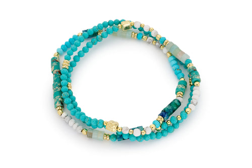 Prunus Turquoise & Gold Crystal Stretch Bracelet
