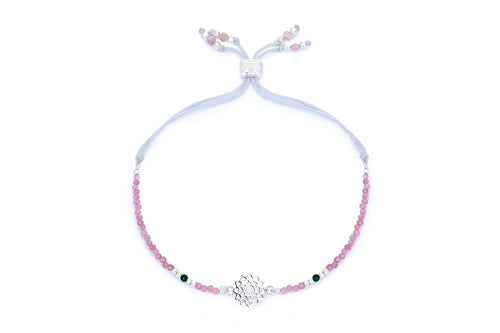 Pink Tourmaline, Malachite & Silver Heart Chakra Bracelet