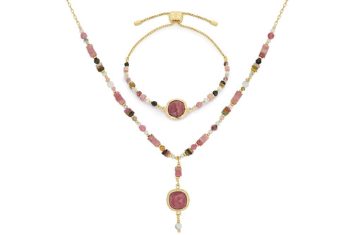 Dash Pink Tourmaline Necklace and Bracelet Set
