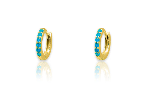 Dorval Turquoise CZ Gold Hoop Huggies Earrings