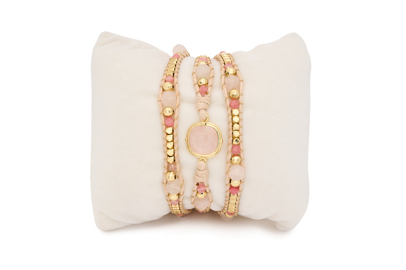 We’re all wrapped up in romance with this dreamy design! This America Wrap Bracelet brings together the soft blush of rose quartz and the vibrant sparkle of pink tourmaline, set against shimmering gold-plated beads. A layering bracelet that radiates warmth, positivity, and feminine strength, a little golden hug for your wrist.