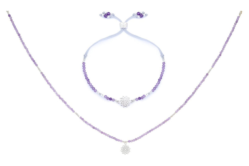 Amethyst & Labradorite Silver Crown Chakra Necklace and Bracelet Set