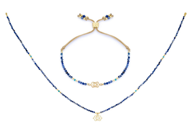 Blue Aventurine & Apatite Gold Third Eye Chakra Necklace and Bracelet Set