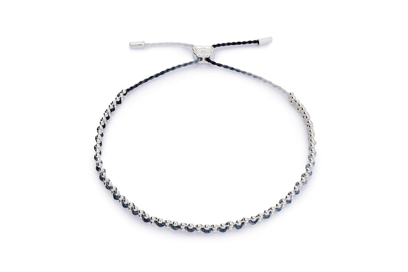 Handwoven with care, the ombre bracelet features charcoal cord entwined with sterling silver-plated chain. It’s tactile, lightweight, and endlessly wearable, with an adjustable slider fastening that makes it easy to slip on and off, however you choose to wear it.