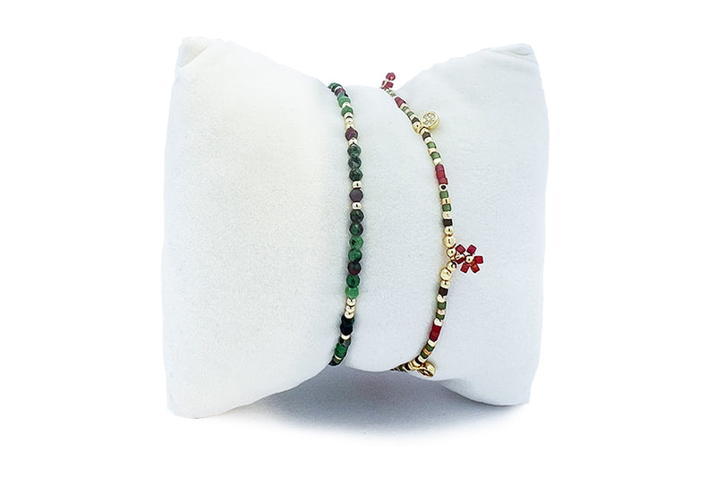 Cabra Gold & Ruby Zoisite Bead Bracelet Stack
