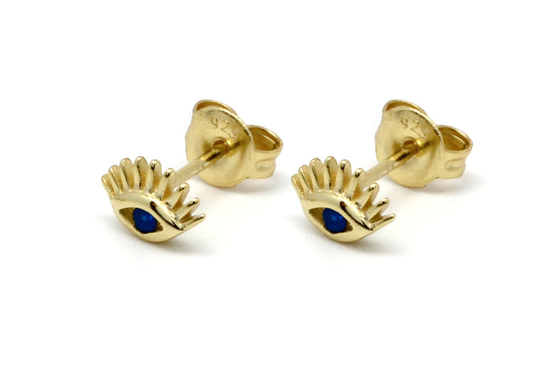 Evie Evil Eye Gold Sapphire CZ Sterling Silver Stud