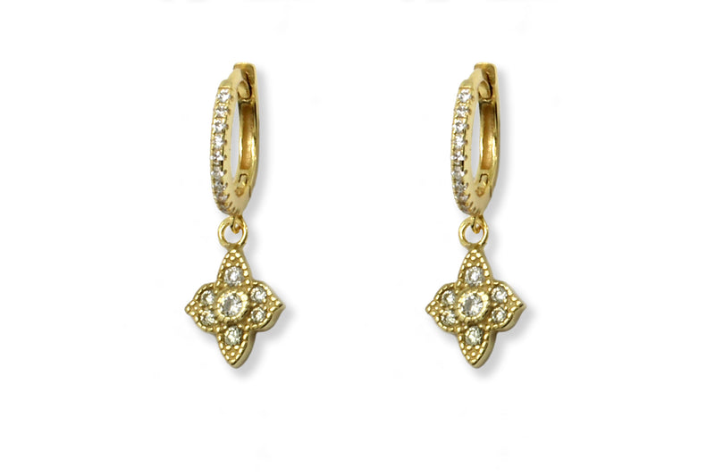 Kruger CZ Filigree Charm Sterling Silver Hoop Earrings