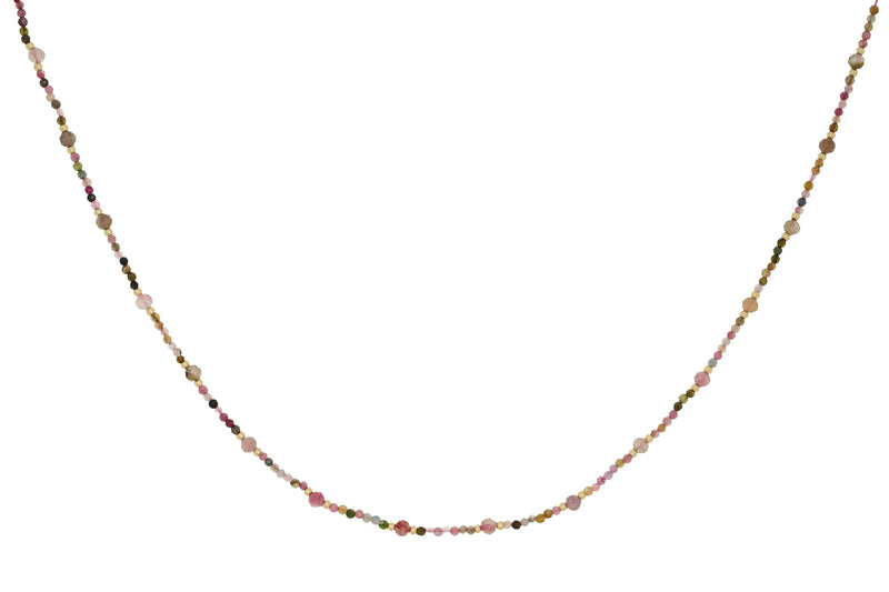A joyful kaleidoscope of earthy colour and energy, made to layer, love, and live in. Meet your new everyday essential: the Melrose Gold Tourmaline Gemstone Bead Necklace. A celebration of playful colour and effortless elegance, this beaded layering necklace is crafted from a beautiful mix of faceted tourmaline gemstones, each one unique in hue and energy.