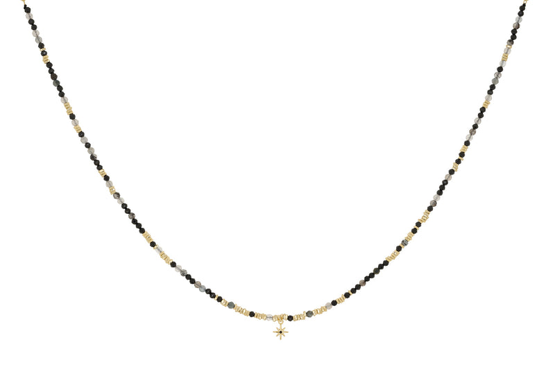 Edgy, elegant, and quietly empowering, the Yolanda Beaded Necklace in black rutilated quartz is a striking talisman for the bold-hearted. Featuring a constellation of dark and smoky tones, this celestial-inspired necklace adds a little mystery to your neckline. It’s made for unforgettable nights, layered looks, and magnetic energy.