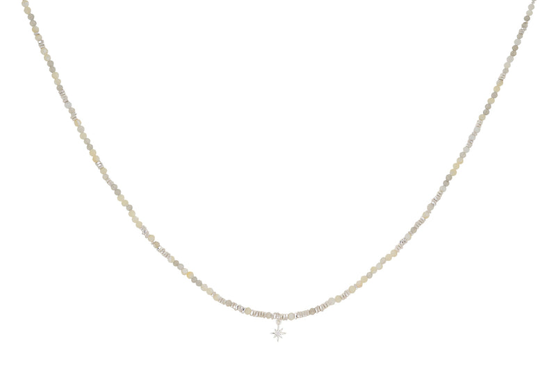 Where silver meets serenity. The Yolanda Moonstone Necklace in Rainbow Moonstone and Mother of Pearl is your calming everyday companion, soft, celestial, and effortlessly expressive. This beaded necklace brings a gentle shimmer and soothing energy to your neckline, with a dreamy palette of white and pearl tones that feels like moonlight bottled up in jewellery form.